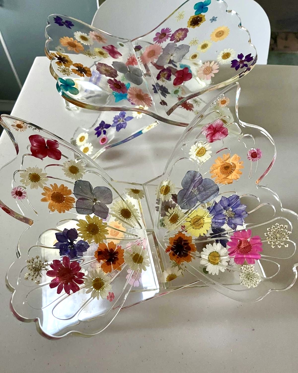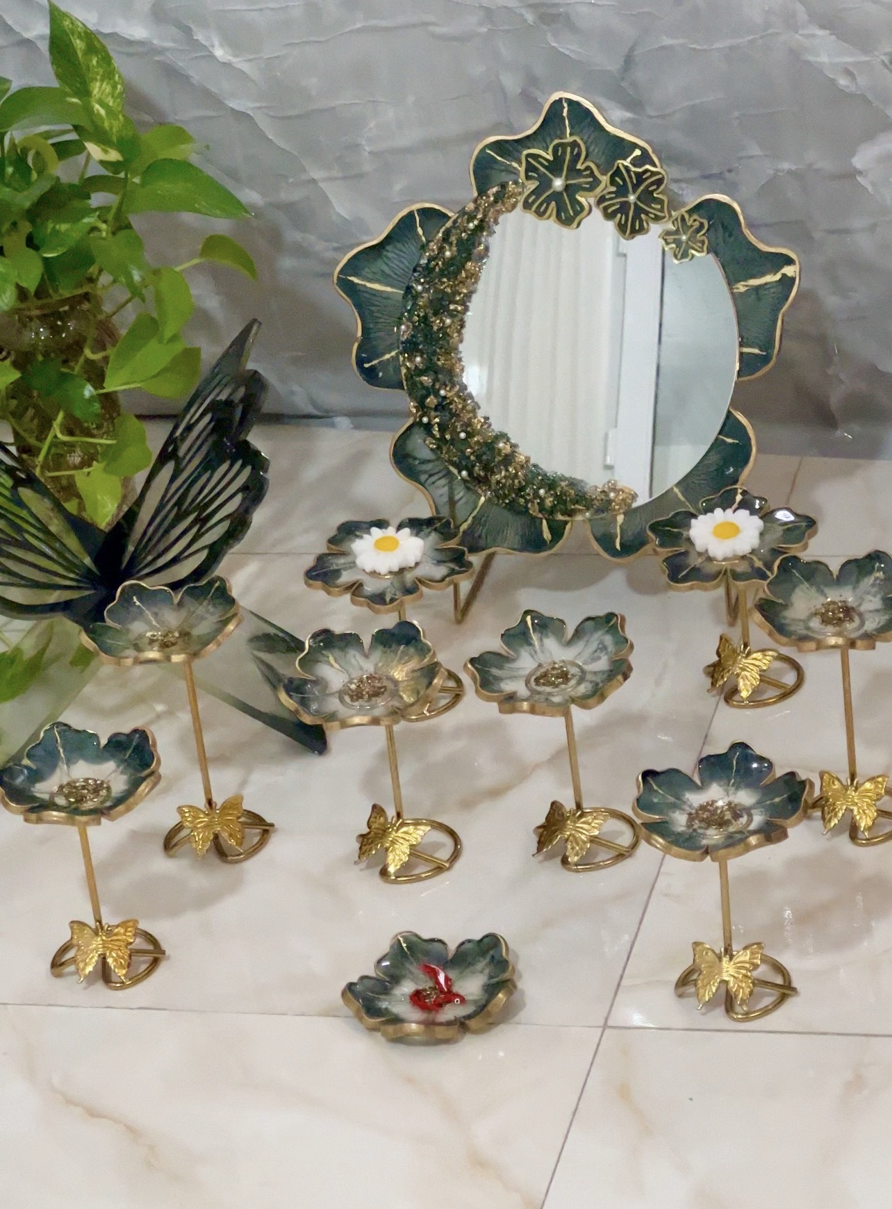 - ست پذیرایی رزینی طرح گل رنگ آبی فیلی با پایه شامپاینی