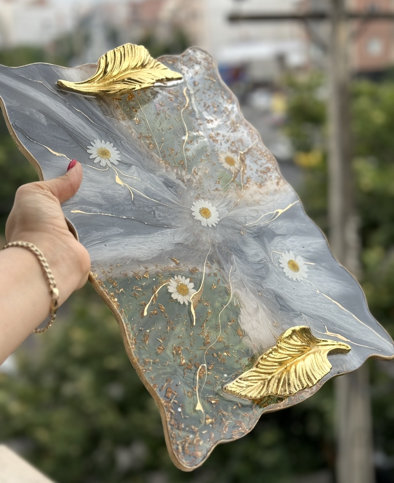 سینی رزینی رنگ طوسی طلایی با گل بابونه۱٬۲۰۰٬۰۰۰ 12%