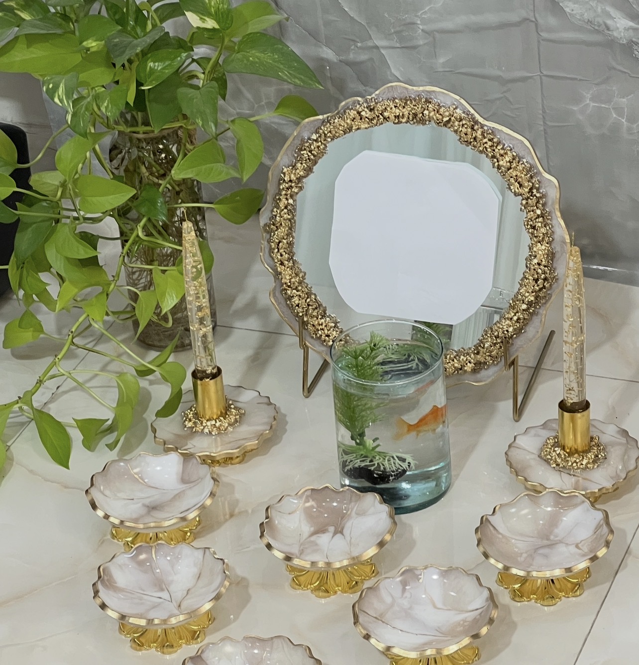 سرویس پذیرایی رزینی رنگ سفید عروس با پایه و هولدر برنجی برگ۶٬۶۰۰٬۰۰۰ 15%