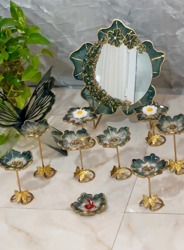 هفتسین رزینی رنگ سبز اژدها با پایه بلند فلزی
