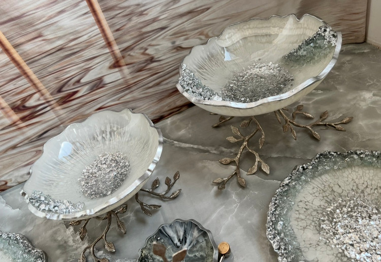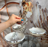 سرویس پذیرایی رزینی رنگ سفید عروس با پایه و هولدر برنجی برگ