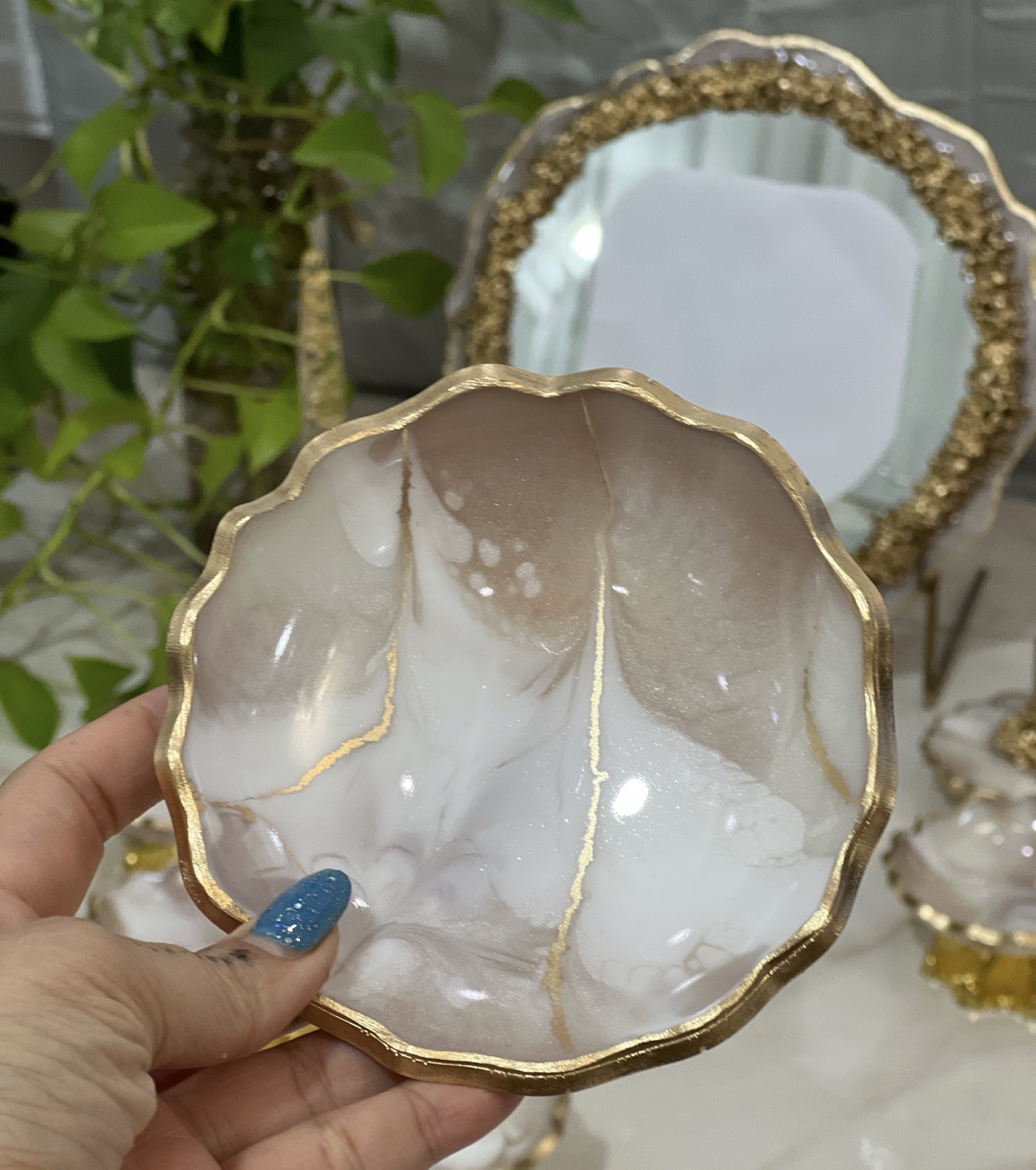 هفتسین رزینی طرح سنگ رزینی،رنگ کرم،پایه زنبق
