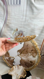 پیشدستی رزینی طرح سنگ وورق طلا رنگ عاجی
